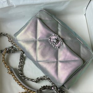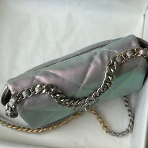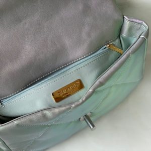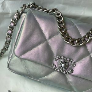 Túi Xách Chanel 19 Flap Bag small size được tạo nên từ chất liệu da cừu sáng bóng. Tất cả đều tạo nên một sự sang trọng, đẳng cấp và khiến hội chị em mê mẩn ngay từ cái nhìn đầu tiên. Túi có kích thước rộng rãi nên bạn sẽ thoải mái đựng rất nhiều vật dụng khác nhau như mỹ phẩm, điện thoại, ví tiền…Ngoài ra, túi được thiết kế với 1 ngăn chính lớn, 1 ngăn zip có khóa kéo chắc chắn và 1 ngăn nhỏ tiện lợi ở phía sau nên bạn sẽ rất dễ dàng sắp xếp vật dụng khi bỏ vào túi.