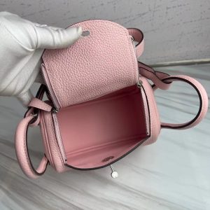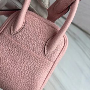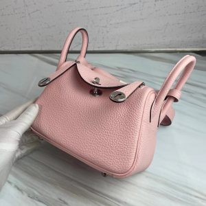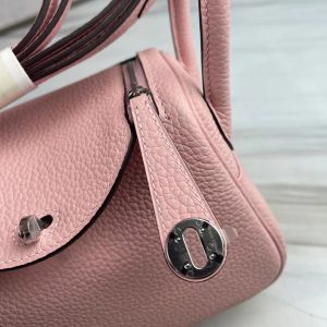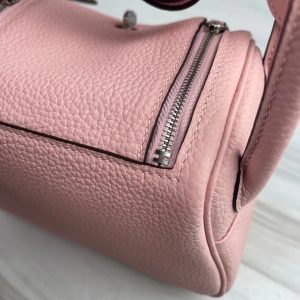 Một chiếc Hermès Lindy Mini được làm thủ công từ da Clemence mềm, với màu hồng nhạt tạo nên sự nhẹ nhàng cho vẻ ngoài hàng ngày. Ngoài chất liệu da cao cấp, mẫu túi này còn tạo ấn tượng nhờ vào những chi tiết trang trí được làm từ kim loại tone bạch kim. Túi được làm thủ công tỉ mỉ đến từng chi tiết, mang lại sự hoàn hảo và chuẩn chỉnh cho chiếc túi.