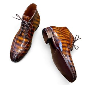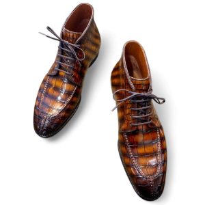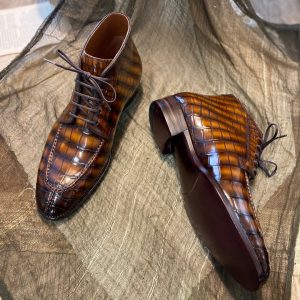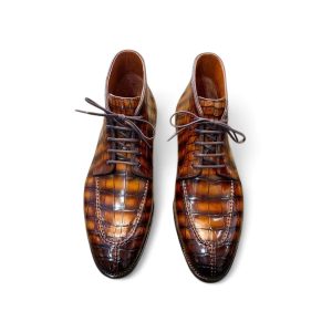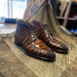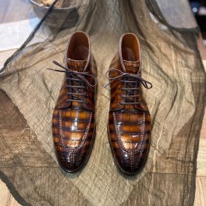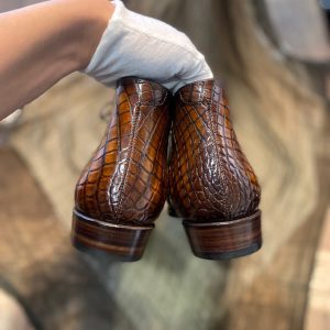 Boots được làm từ da cá sấu cao cấp nhập khẩu, lên màu patina thủ công, cấu trúc goodyear handmade rất chắc chắn, chống thấm nước, độ thông thoáng cao không hôi chân.
