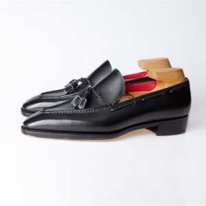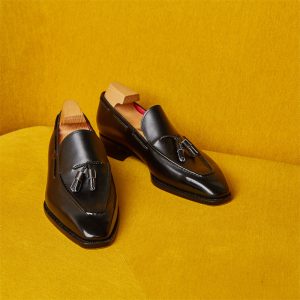 Giày Tassel Loafer là một loại giày nam có thiết kế đặc trưng với những dải da phụ kiện được đan vào mũi giày, tạo ra một chi tiết tassels độc đáo và trang trí cho giày. Phong cách của giày Tassel Loafer thường mang đến sự thoải mái, nhẹ nhàng và phóng khoáng cho người mặc.