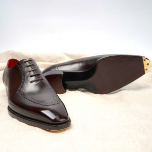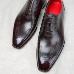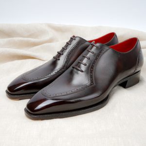 Giày Apron Toe Oxford thường được làm bằng da cao cấp, với đế giày bằng da Ý. Kiểu dáng này thường được sử dụng trong các bộ đồ công sở truyền thống, hoặc có thể được sử dụng để tạo nên một phong cách thời trang lịch sự nhưng cá tính.