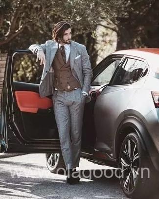Một bộ vest màu xám phối cùng chiếc thắt lưng da trắng là sự kết hợp vô cùng hoàn hảo. Bạn sẽ trông thật sành điệu và đẳng cấp hơn khi mang cùng đôi giày derby da đen.