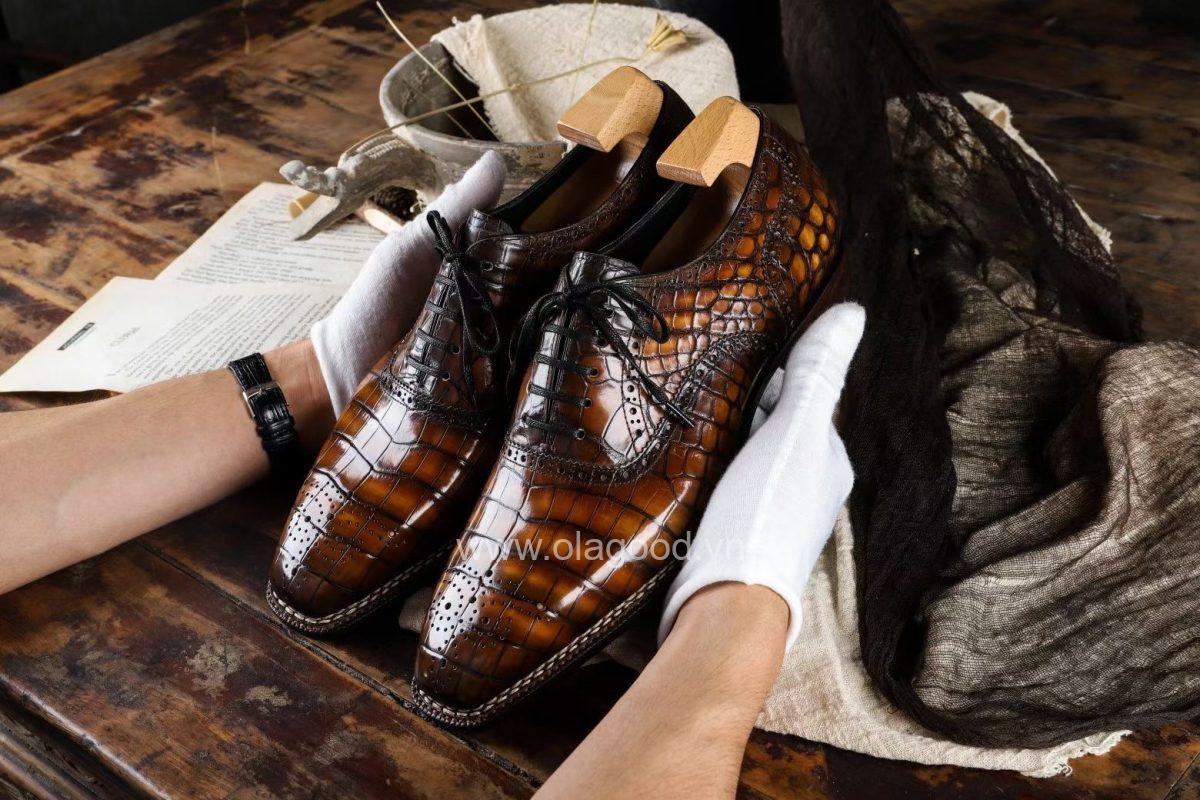 Tại Olagood, để mỗi đôi giày trở thành dấu ấn riêng trong phong cách của những quý ông hiện đại, những năm qua Olagood không ngừng nổ lực, đổi mới và thiết kế đa dạng những mẫu giày da cao cấp sang trọng, với chất liệu da cá sấu nhập khẩu cao cấp như: Da cá sấu Mỹ nhập khẩu, da cá sấu Nile nhập khẩu, da cá sấu Úc nhập khẩu, da cá sấu Thái Lan… phù hợp với những bữa tiệc, gặp gỡ đối tác khách hàng. Những đôi giày cá sấu Olagood, không chỉ là cấu trúc handmade đẳng cấp sang trọng, mà còn bởi màu sắc patina thủ công theo yêu cầu của khách hàng, mỗi một đôi giày là sự độc nhất vô nhị, duy nhất, thể hiện tính cách riêng của mỗi người.
