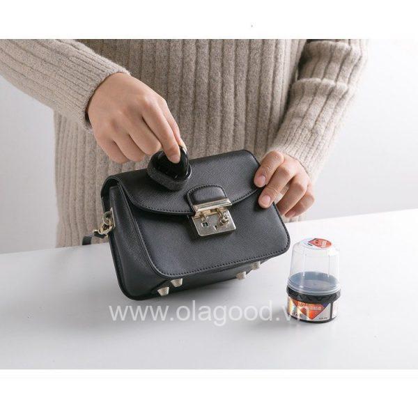 Bước 4: Sau đó, dùng bông gòn phủ một ít xi đánh giày cùng màu lên vị trí bị xước.