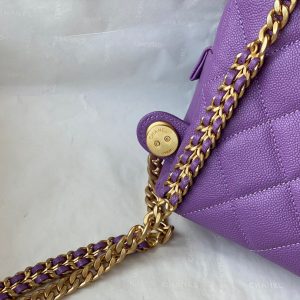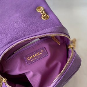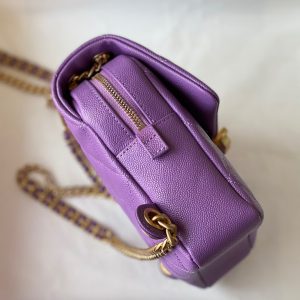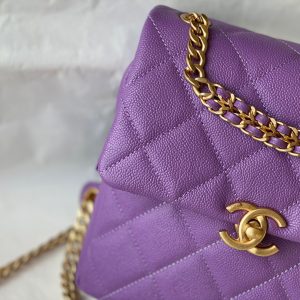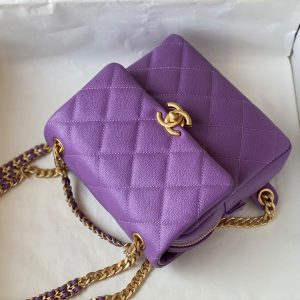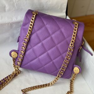 Túi được làm từ da bê hạt nổi màu tím chống bụi bẩn và bền. Balo quá phù hợp với dáng lõm, rảnh tay, nhỏ nhắn, tinh tế và lệch so với dáng dây rút truyền thống của balo. Thiết kế nắp bật có khóa kéo, trang bị an toàn cấp 1. Túi này có nhiều màu, trắng, vàng, tím, đỏ hồng.