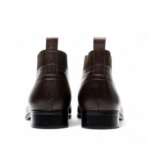 Boot lace với phần cổ cao ôm chân và hệ thống dây buộc chắc chắn mang đến sự hỗ trợ tuyệt vời và vẻ ngoài mạnh mẽ, nam tính. Điểm nhấn đặc biệt nằm ở họa tiết Wingtip (mũi giày hình chữ W kéo dài về phía thân giày) được trang trí bằng các đường đục lỗ Brogue tinh xảo. Thiết kế này không chỉ tạo điểm nhấn thị giác mà còn gợi nhớ đến phong cách thời trang cổ điển, đậm chất quý tộc Anh Quốc. Sự kết hợp giữa phom dáng boot mạnh mẽ và họa tiết Wingtip lịch lãm tạo nên một sự hòa quyện độc đáo và cuốn hút.