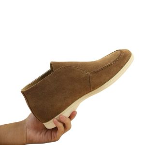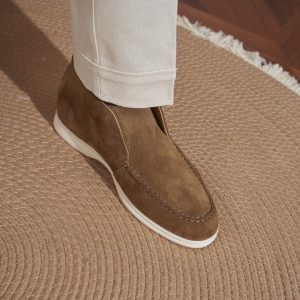 Một đôi boot nam cổ ngắn da lộn cao cấp là kết quả của quá trình chế tác tỉ mỉ và tinh xảo. Từ việc lựa chọn những tấm da lộn tốt nhất, đến các đường khâu chắc chắn, đều đặn và các chi tiết hoàn thiện tỉ mỉ như khóa kéo, dây buộc (nếu có), tất cả đều thể hiện sự tâm huyết và tay nghề cao của người thợ. Lớp lót bên trong êm ái và phần đế được gia công chắc chắn cũng góp phần mang lại trải nghiệm mang tuyệt vời.