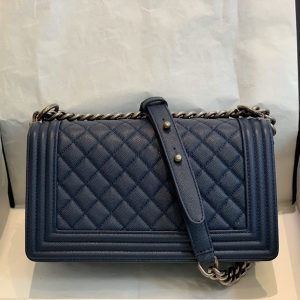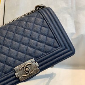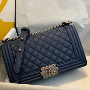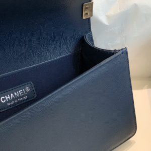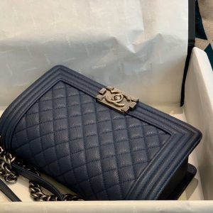 Túi được làm từ da bê hạt nổi màu xanh navy chống bụi bẩn và bền, thiết kế sang trọng tinh tế. Bên trong túi rộng rãi có thể chứa nhiều đồ cá nhân mang theo như điện thoại, đồ trang điểm cá nhân…