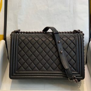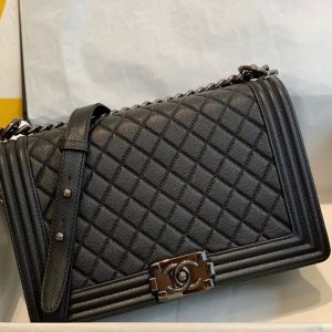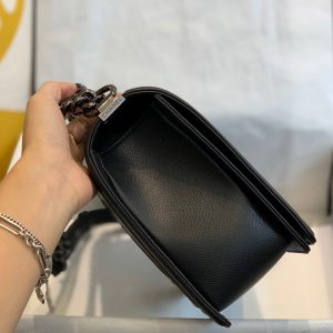 Túi được làm từ da bê hạt nổi màu đen chống bụi bẩn và bền, thiết kế sang trọng tinh tế. Bên trong túi rộng rãi có thể chứa nhiều đồ cá nhân mang theo như điện thoại, đồ trang điểm cá nhân…