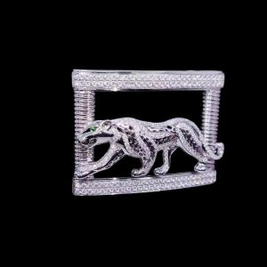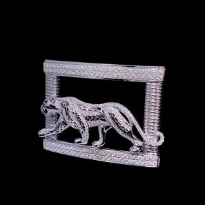 Đầu khóa thắt lưng hình con báo bạc Ý 925 mạ vàng trắng, đính kim cương Moissanite là lựa chọn lý tưởng cho các quý ông yêu thích phong cách độc đáo và mạnh mẽ. Đây không chỉ là phụ kiện thể hiện phong cách thời trang cá nhân mà còn là biểu tượng của bản lĩnh và sự tinh tế, giúp các quý ông tỏa sáng trong mọi hoàn cảnh.