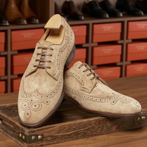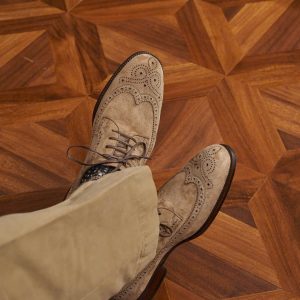 Da cashmere Pháp, nổi tiếng với độ mềm mại như nhung, sự dẻo dai và vẻ đẹp tự nhiên không tì vết, là một chất liệu quý hiếm và đẳng cấp. Khi được sử dụng để chế tác giày Derby Longwing, nó không chỉ mang đến cảm giác êm ái, thoải mái tuyệt đối cho đôi chân mà còn tôn lên vẻ sang trọng và đẳng cấp vượt trội. Bề mặt da cashmere Pháp mịn màng, với độ bóng tinh tế, tạo nên một vẻ ngoài quý phái và thu hút mọi ánh nhìn.