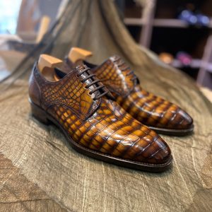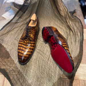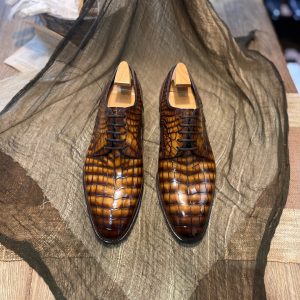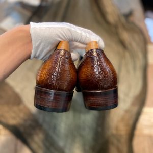 Giày được làm từ da cá sấu nile cao cấp nhập khẩu, lên màu patina, cấu trúc goodyear handmade chắc chắn, thông thoáng,chống ẩm chống hôi chân. Giày được gia công tỉ mỉ từng chi tiết, kiểu dáng sang trọng chuẩn form, đi rất thoải mái. Giày phù hợp với những buổi dự tiệc, liên hoan hay gặp gỡ đối tác khách hàng…