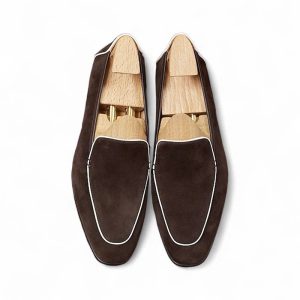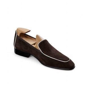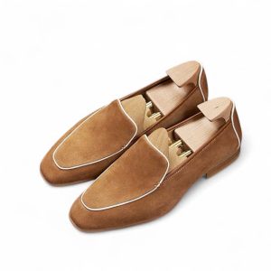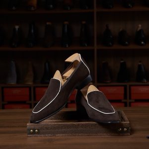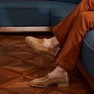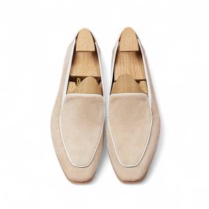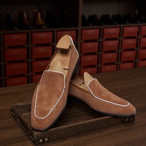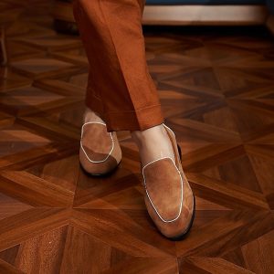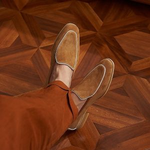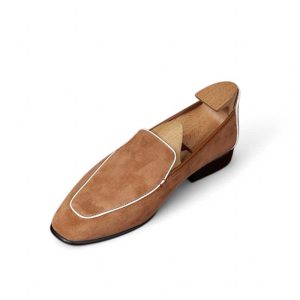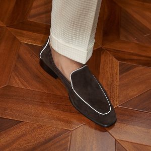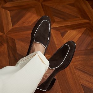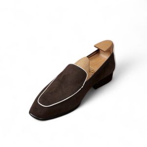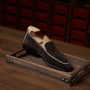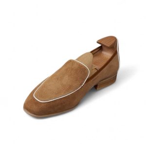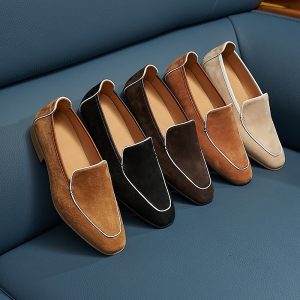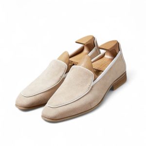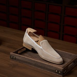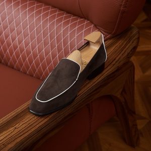 Da cashmere, được lấy từ lớp lông tơ mềm mại của dê cashmere, nổi tiếng với sự mịn màng, nhẹ nhàng và khả năng giữ ấm tuyệt vời. Khi được ứng dụng vào chế tác giày loafer, chất liệu này mang đến một cảm giác êm ái, dễ chịu ngay từ lần chạm đầu tiên. Khác với các loại da thông thường, da cashmere có độ rũ tự nhiên, tạo nên vẻ ngoài mềm mại và sang trọng đặc trưng cho đôi giày.