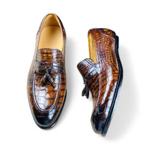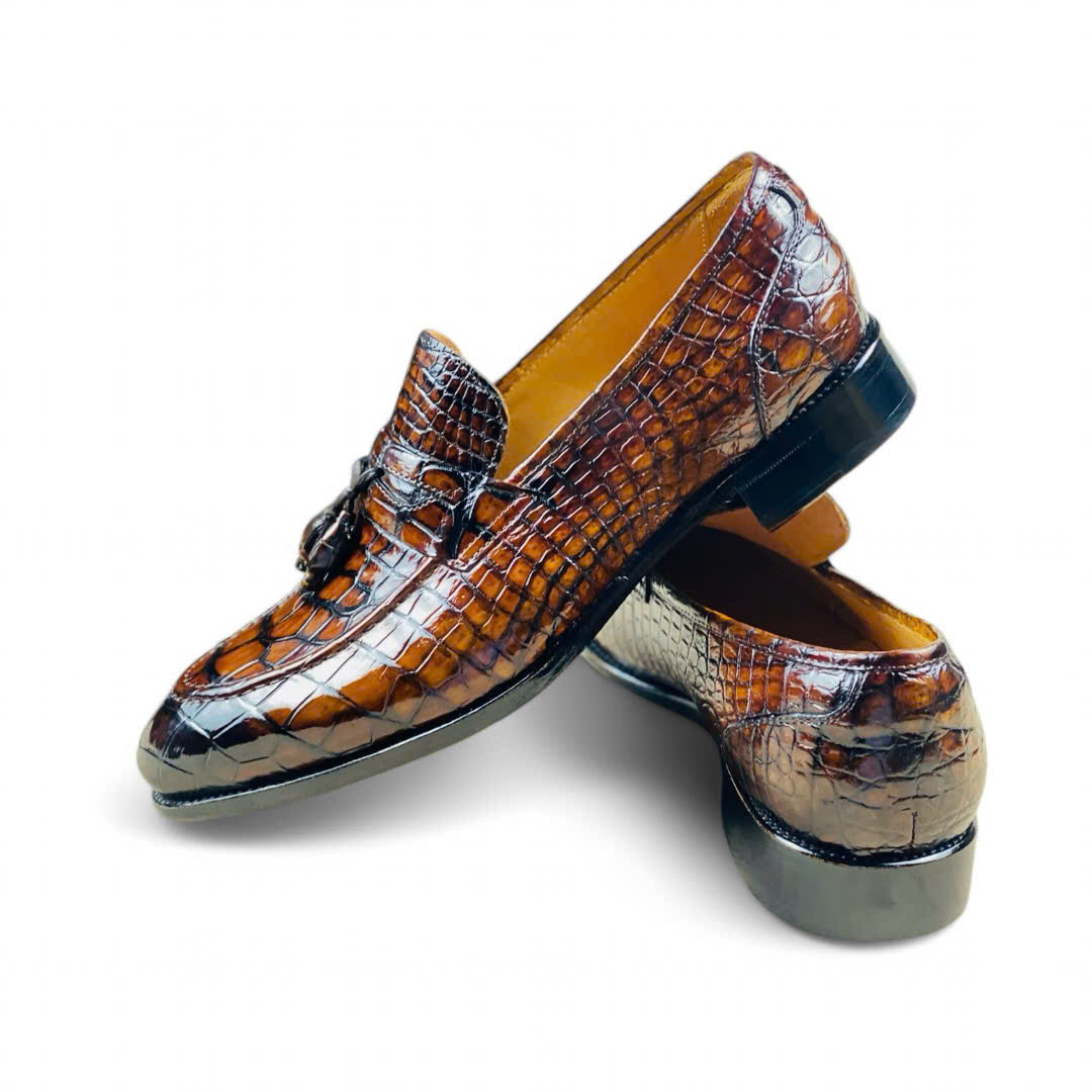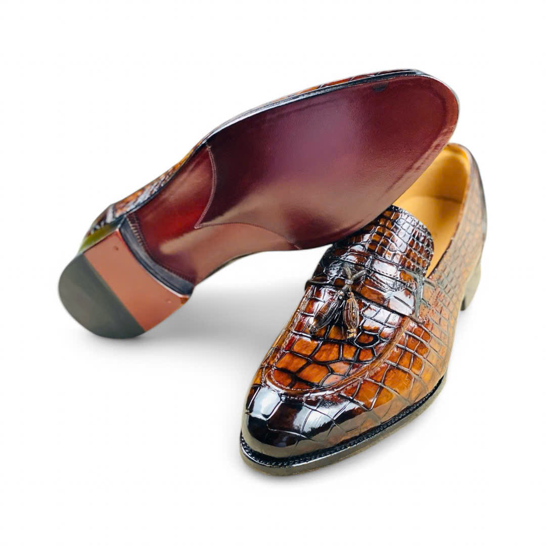 Thực hiện cấu trúc này hoàn toàn thủ công trên da cá sấu đòi hỏi kỹ năng tinh vi và sự tỉ mỉ đến từng milimet – một đặc quyền chỉ có ở những xưởng giày thủ công cao cấp.