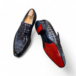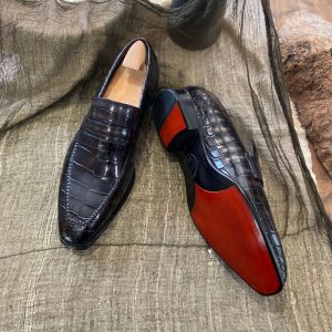 – Upper (Da mặt): Da cá sấu Nile cao cấp nhập khẩu, lên màu patina.