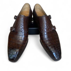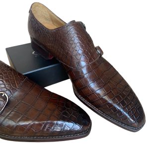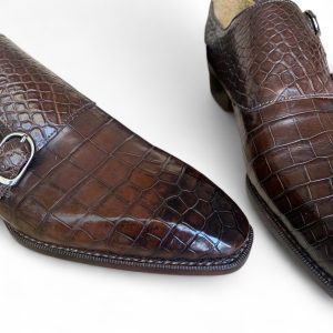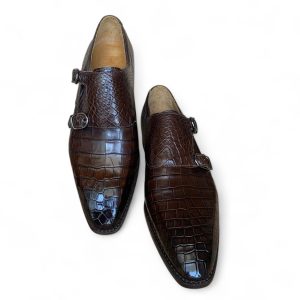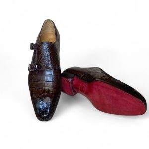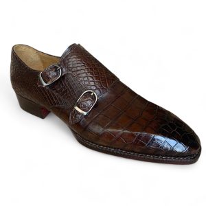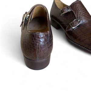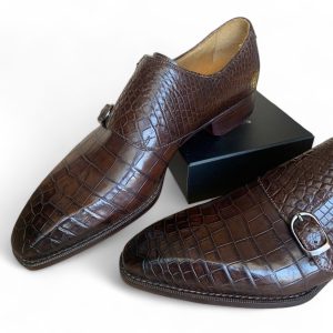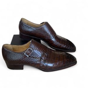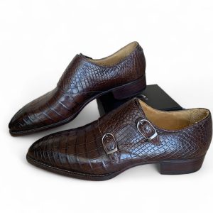 Được làm từ da cá sấu nhập khẩu 100% từ Thái Lan, gia công thủ công theo cấu trúc Goodyear. Đôi giày mang phong cách quý tộc sang trọng, được thiết kế theo mẫu Double – Monk Strap của Italy, là một trong những mẫu giày kinh điển từ trước tới nay.