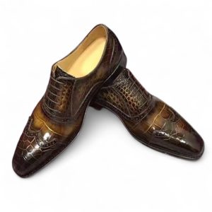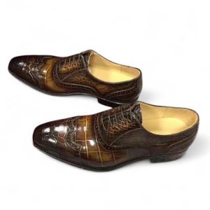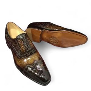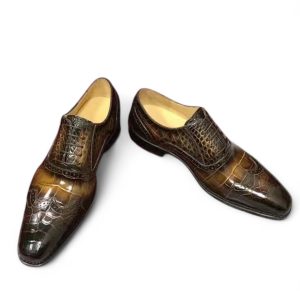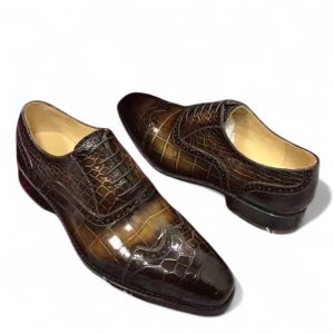 Giày nam handmade da cá sấu – GGY0121S được làm từ da cá sấu cao cấp, giày được thiết kế theo phong cách châu âu kiểu dáng sang trọng, được lên màu patina thủ công. Với cấu trúc goodyear handmade vô cùng chắc chắn, đường chỉ may đều, đường nét sắc xảo, tạo nên vẻ sang trọng đẳng cấp cho đôi giày. Giày phù hợp với những buổi dạ tiệc, liên hoan hay những buổi gặp gỡ khách hàng…