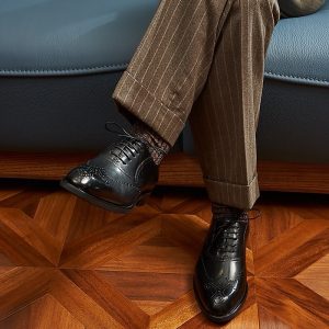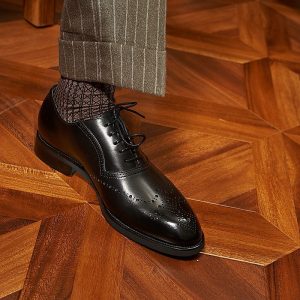 Một đôi giày Oxford Adelaide họa tiết Medallion da bê nhập khẩu cao cấp là kết quả của quá trình chế tác tỉ mỉ và tinh xảo, thường được thực hiện bởi những người thợ lành nghề. Từ đường kim mũi chỉ đều đặn, đường cắt da chính xác, đến các lỗ đục Medallion được thực hiện một cách cẩn thận và đẹp mắt, tất cả đều tuân theo những tiêu chuẩn quốc tế khắt khe nhất.