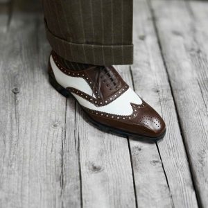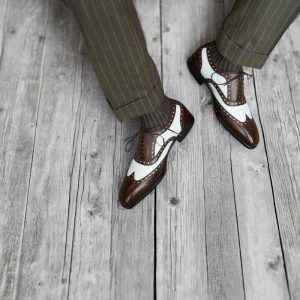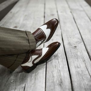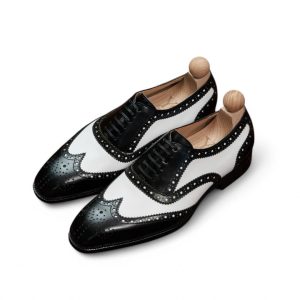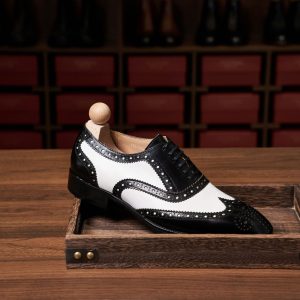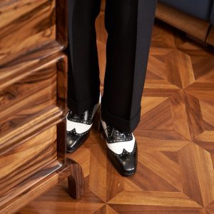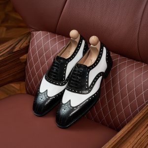 Điểm làm nên sự khác biệt và thu hút của giày Spectator chính là sự kết hợp của hai tông màu tương phản trên cùng một đôi giày. Thông thường, phần mũi và gót giày sẽ có màu tối hơn (đen, nâu đậm), trong khi phần thân giày có màu sáng hơn (trắng, be, nâu nhạt). Sự tương phản màu sắc này tạo nên một hiệu ứng thị giác mạnh mẽ, giúp người mang trở nên nổi bật và thể hiện gu thời trang cá tính.