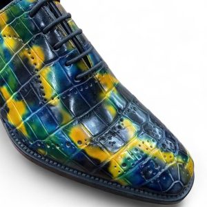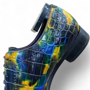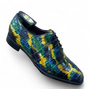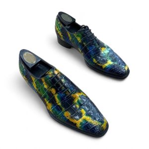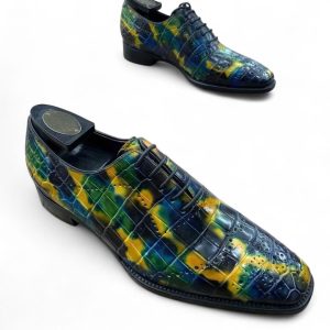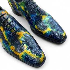 Đây là dòng giày được lên màu patina đặc biệt với độ khó cao, đòi hỏi người thợ phải cực kỳ cẩn thận và chính xác, mất rất nhiều thời gian và công sức. Đôi giày này được làm từ da cá sấu Nile nhập khẩu và làm từ 2 con cá lớn có vân đều nhau. Được gia công thủ công goodyear handmade 100%, rất chắc chắn, đường nét sắc sảo tinh tế, sang trọng.
