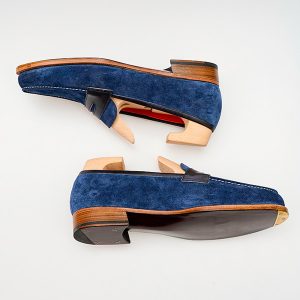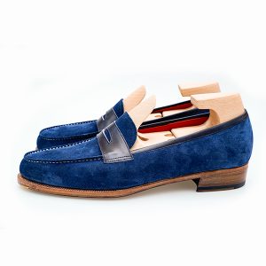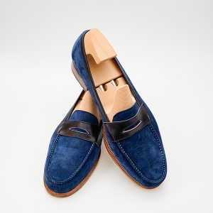 Giày Penny Loafer Suede là một loại giày bằng chất liệu da lộn và không dây buộc. Loại giày này được thiết kế với một mảng da nhỏ nằm ở trên mũi giày và một khoảng trống ở giữa, tạo ra một kiểu dáng đặc trưng.