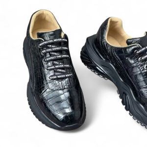 Giày được làm từ da cá sấu cao cấp, gia công tỉ mỉ chắc chắn, đường nét sắc sảo tinh tế, với phần đế là cao su chống trơn trượt, chống mài mòn. Giày được thiết kế với phong cách thể thao, trẻ trung năng động, nhưng cũng rất sang trọng, giày phù hợp với những buổi đi chơi, dã ngoại hay gặp gỡ bạn bè.