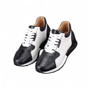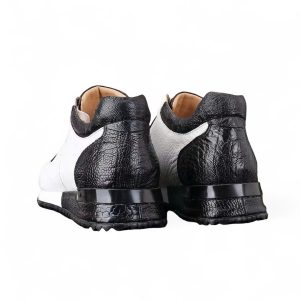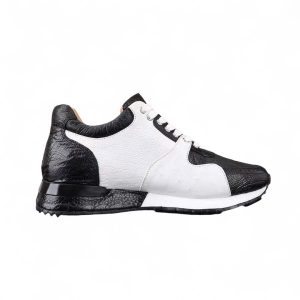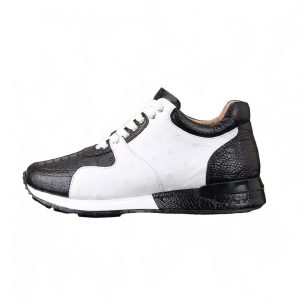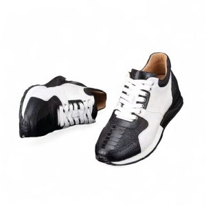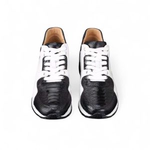 Giày sneaker nam da đà điểu – GTT0116D là mẫu giày cao cấp của Olagood, giày thiết kế theo phong cách thể thao trẻ trung năng động, phối màu trắng đen rất hài hòa, phù hợp với nhiều phong cách thời trang khác nhau. Giày, được làm bởi sự kết hợp giữa da chân đà điểu và da mình đà điểu, được gia công tỉ mỉ, chắc chắn, đường nét sắc sảo tinh tế, rất sang trọng. Giày phù hợp với nhiều độ tuổi khác nhau, có thể mang đi chơi, dã ngoại, gặp gỡ bạn bè …