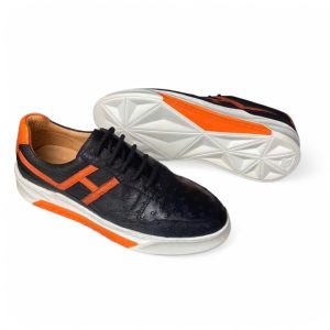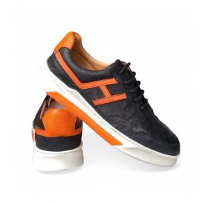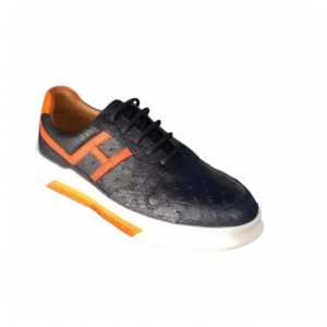 Giày thiết kế với kiểu dáng trẻ trung năng động, với điểm nhấn chữ H màu cam. Giày được làm từ da đà điểu nhập khẩu, gia công tỉ mỉ, đường nét sắc sảo chắc chắn, form giày chuẩn đi rất thoải mái và êm chân. Giày phù hợp với nhiều độ tuổi, có thể đi chơi, dã ngoại hay gặp gỡ bạn bè…