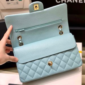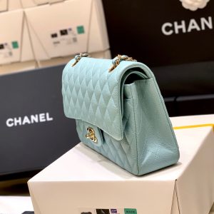 Túi Chanel classic 25 handbag da hạt màu xanh nhạt – CCX023 đây là dòng túi xách cao cấp của chanel, mẫu này được ra mắt lần đầu tiên vào năm 1955. Túi được làm từ da hạt Caviar Leather, với phụ kiện là hợp kim cao cấp không gỉ sáng bóng sang trọng. Túi có đầy đủ full bill box.