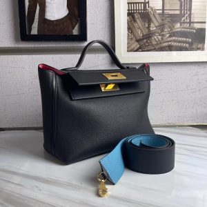 Túi Hermes 24/24 được kết hợp bởi 2 loại da cao cấp Evercolor và da Swift, với dây đeo vai có thể tháo rời và phần cứng màu bạch kim. Túi được làm thủ công 100%, đường nét sắc sảo, tỉ mỉ đến từng chi tiết, tạo nên sự hoàn hảo cho chiếc túi. Hermes 24/24 cũng có thể đựng được tất cả các vật dụng cần thiết của bạn, từ điện thoại, ví, và chìa khóa… Túi có đầy đủ hóa đơn bill box và có nhiều kích thước khác nhau.