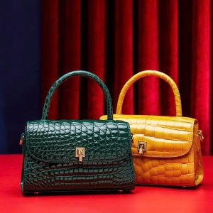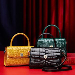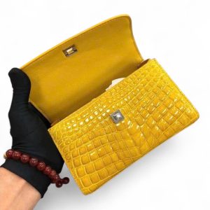 – Mặt ngoài: Được làm từ phần bụng da cá sấu bóng kính Nile nhập khẩu.