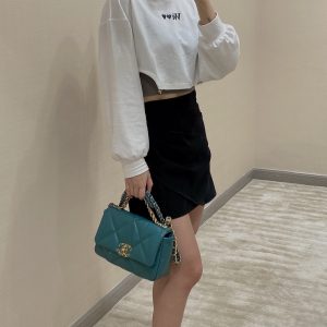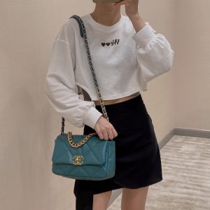 Túi Xách Chanel 19 Flap Bag small size được tạo nên từ chất liệu da cừu sáng bóng. Tất cả đều tạo nên một sự sang trọng, đẳng cấp và khiến hội chị em mê mẩn ngay từ cái nhìn đầu tiên. Túi có kích thước rộng rãi nên bạn sẽ thoải mái đựng rất nhiều vật dụng khác nhau như mỹ phẩm, điện thoại, ví tiền…Ngoài ra, túi được thiết kế với 1 ngăn chính lớn, 1 ngăn zip có khóa kéo chắc chắn và 1 ngăn nhỏ tiện lợi ở phía sau nên bạn sẽ rất dễ dàng sắp xếp vật dụng khi bỏ vào túi.