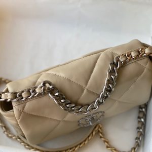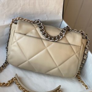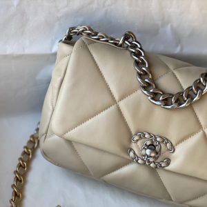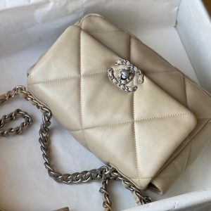 Túi Xách Chanel 19 Flap Bag small size được tạo nên từ chất liệu da cừu sáng bóng. Tất cả đều tạo nên một sự sang trọng, đẳng cấp và khiến hội chị em mê mẩn ngay từ cái nhìn đầu tiên. Túi có kích thước rộng rãi nên bạn sẽ thoải mái đựng rất nhiều vật dụng khác nhau như mỹ phẩm, điện thoại, ví tiền…Ngoài ra, túi được thiết kế với 1 ngăn chính lớn, 1 ngăn zip có khóa kéo chắc chắn và 1 ngăn nhỏ tiện lợi ở phía sau nên bạn sẽ rất dễ dàng sắp xếp vật dụng khi bỏ vào túi.