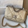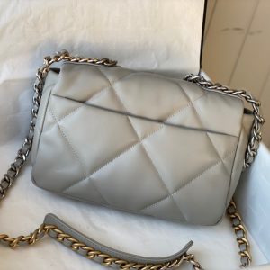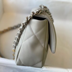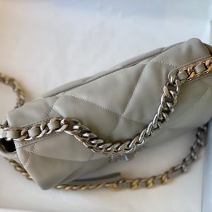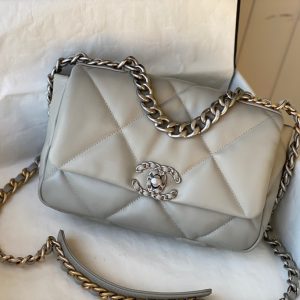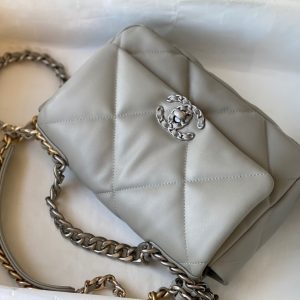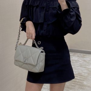 Túi Xách Chanel 19 Flap Bag small size được tạo nên từ chất liệu da cừu sáng bóng. Tất cả đều tạo nên một sự sang trọng, đẳng cấp và khiến hội chị em mê mẩn ngay từ cái nhìn đầu tiên. Túi có kích thước rộng rãi nên bạn sẽ thoải mái đựng rất nhiều vật dụng khác nhau như mỹ phẩm, điện thoại, ví tiền…Ngoài ra, túi được thiết kế với 1 ngăn chính lớn, 1 ngăn zip có khóa kéo chắc chắn và 1 ngăn nhỏ tiện lợi ở phía sau nên bạn sẽ rất dễ dàng sắp xếp vật dụng khi bỏ vào túi.
