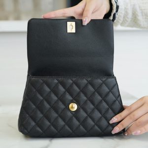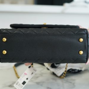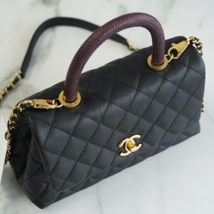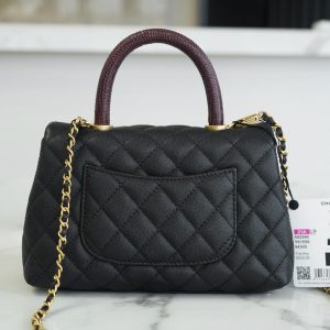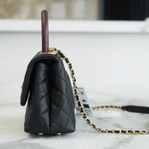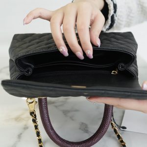 Túi được làm bằng da bê hạt có độ bền cao, mềm mại, chống thấm nước. Một chiếc túi chanel Coco handle thanh lịch nhưng cũng đầy khí chất, phù hợp với tất cả các mùa trong năm. Tay cầm bằng da thằn lằn thật, tôn lên hình dáng tổng thể để nâng cao tầm nhìn sang trọng, dây xích cũng có thể được tháo rời, hoặc dùng để đeo vai hoặc đeo chéo. Chanel coco handle màu đen dễ dàng phối đồ cho các dịp lễ hội khác nhau, là một sự lựa chọn hoàn hảo cho các chị em.