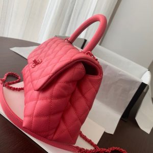Túi được làm bằng da bê hạt có độ bền cao, mềm mại, chống thấm nước. Một chiếc túi chanel Coco handle thanh lịch nhưng cũng đầy khí chất sang trọng, phù hợp với tất cả các mùa trong năm. Dây xích cũng có thể được tháo rời, hoặc dùng để đeo vai hoặc đeo chéo. Chanel coco handle màu đỏ là một sự lựa chọn hoàn hảo cho các chị em.