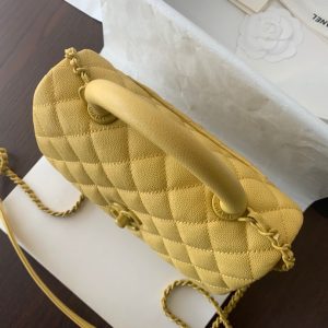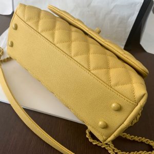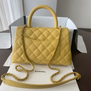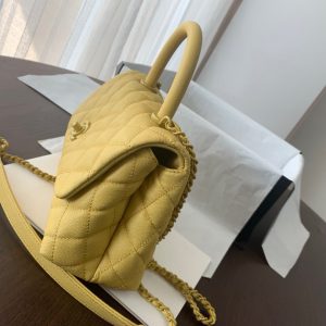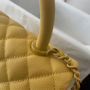 Túi được làm bằng da bê hạt có độ bền cao, mềm mại, chống thấm nước. Một chiếc túi chanel Coco handle thanh lịch nhưng cũng đầy khí chất sang trọng, phù hợp với tất cả các mùa trong năm. Dây xích cũng có thể được tháo rời, hoặc dùng để đeo vai hoặc đeo chéo. Chanel coco handle màu vàng là một sự lựa chọn hoàn hảo cho các chị em.