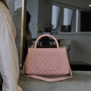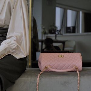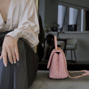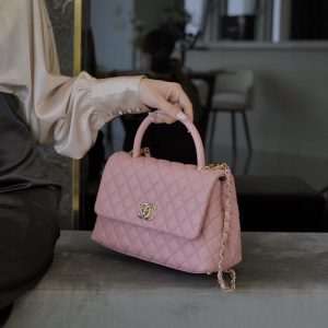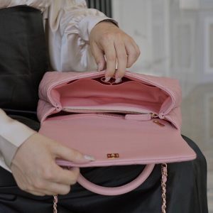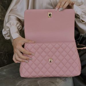 Túi xách Chanel Coco Handle 29 được thiết kế rất tinh tế là sự kết hợp da bê ở phần tay cầm và dây đeo của túi. Điều này không chỉ tạo nên sự hài hòa mà còn giúp chiếc túi trở nên sang trọng hơn, thoải mái hơn cho chị em, có thể tự tin hơn với tay cầm hoặc tiện lợi hơn với dây đeo kim loại. Túi cũng được thiết kế theo kiểu dáng nắp gập rất nữ tính. Khóa từ tính có độ nhạy cao giúp bạn mở, đóng túi dễ dàng. Ở phần khóa, logo Chanel được lồng ghép với 2 chữ “C” rất nổi bật. Chanel coco handle 29 màu hồng là một sự lựa chọn hoàn hảo cho các chị em.