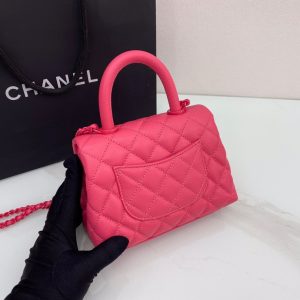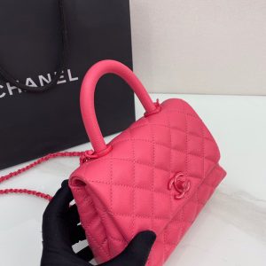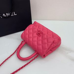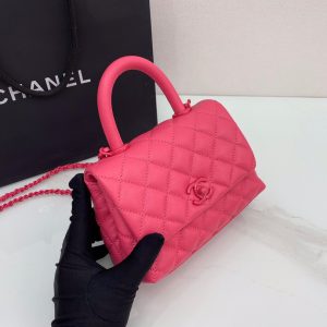 Túi được làm bằng da bê hạt có độ bền cao, mềm mại, chống thấm nước, có thể bóp lại theo ý muốn mà không bị nhăn và biến dạng, dây xích cũng có thể được tháo rời, hoặc dùng để đeo vai hoặc đeo chéo. Một chiếc túi Chanel Mini Coco handle thanh lịch nhưng cũng tôn lên hình dáng tổng thể để nâng cao tầm nhìn sang trọng, phù hợp với tất cả các mùa trong năm. Chanel coco handle có rất nhiều màu như đen, đỏ, xanh, vàng … là một sự lựa chọn hoàn hảo cho các chị em.