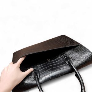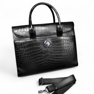 Túi xách công sở da cá sấu Nile thường được thiết kế với kiểu dáng vuông vắn, gọn gàng, phù hợp với môi trường làm việc chuyên nghiệp. Các chi tiết được gia công tỉ mỉ, từ đường kim mũi chỉ đến khóa kéo, móc cài, đều được lựa chọn kỹ lưỡng để đảm bảo độ bền và tính thẩm mỹ cao nhất. Bên trong cặp được thiết kế khoa học với nhiều ngăn chứa tiện dụng.