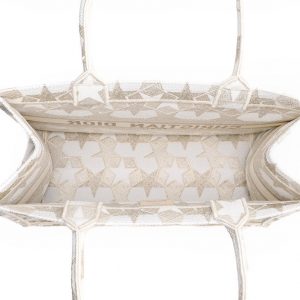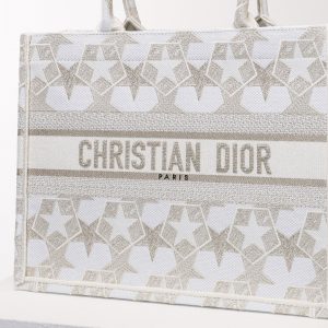Được giới thiệu bởi Maria Grazia Chiuri, Giám đốc Sáng tạo của Christian Dior, Dior Book Tote đã trở thành một yếu tố quan trọng của thẩm mỹ Dior. Được thiết kế để đựng tất cả các vật dụng cần thiết hàng ngày, kiểu dáng được thêu hoàn toàn bằng bản in Dior Étoile mới, trong đó có họa tiết ngôi sao rất tinh tế và sắc sảo. Tote được tô điểm thêm với chữ ký ‘CHRISTIAN DIOR PARIS’ ở mặt trước. Thể hiện phong cách savoir-faire đặc trưng của Ngôi nhà, chiếc tote lớn có thể được mang bằng tay hoặc đeo qua vai.