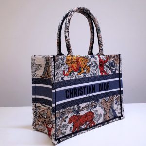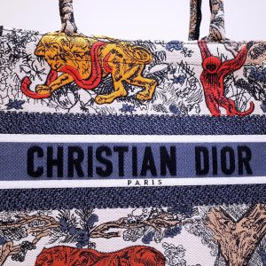 Được giới thiệu bởi Maria Grazia Chiuri, Giám đốc Sáng tạo của Christian Dior, Dior Book Tote đã trở thành một yếu tố quan trọng của thẩm mỹ Dior. Được thiết kế để chứa tất cả các vật dụng cần thiết hàng ngày, kiểu áo này được thêu hoàn toàn bằng họa tiết Toile de Jouy Reverse màu xanh lam, một biến thể của họa tiết nổi bật của Ngôi nhà với cách chơi màu sắc đảo ngược. Được tô điểm bằng chữ ký ‘CHRISTIAN DIOR PARIS’ ở mặt trước, chiếc túi trung bình thể hiện dấu ấn savoir-faire đặc trưng của Nhà và có thể được xách tay hoặc đeo qua vai.