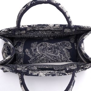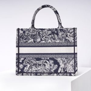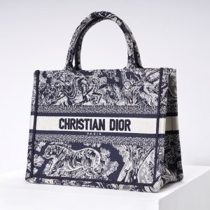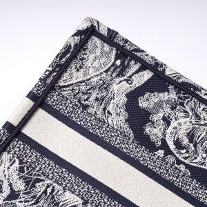 Được giới thiệu bởi Maria Grazia Chiuri, Giám đốc Sáng tạo của Christian Dior, Dior Book Tote đã trở thành một yếu tố quan trọng của thẩm mỹ Dior. Được thiết kế để chứa tất cả các vật dụng cần thiết hàng ngày, kiểu áo này được thêu hoàn toàn bằng họa tiết Toile de Jouy Reverse màu xanh lam, một biến thể của họa tiết nổi bật của Ngôi nhà với cách chơi màu sắc đảo ngược. Được tô điểm bằng chữ ký ‘CHRISTIAN DIOR PARIS’ ở mặt trước, chiếc túi trung bình thể hiện dấu ấn savoir-faire đặc trưng của Nhà và có thể được xách tay hoặc đeo qua vai.