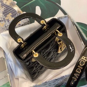 Túi xách dior lady 5 mắt da bóng màu đen – DOLD023