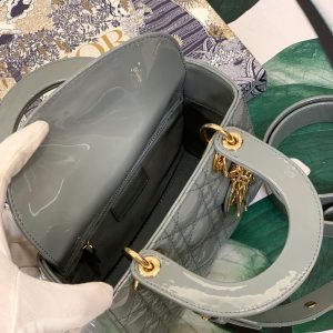 Túi xách dior lady 5 mắt da bóng màu xám – DOLX027 là dòng túi like auth 1:1, túi được gia công tỉ mĩ, thiết kế chuẩn form, được làm từ chất liệu da bê cao cấp, rất mềm mại, có thể lau sạch vết bẩn dích trên da. Phụ kiện túi được làm từ thép không gỉ , sáng bóng sang trọng.
