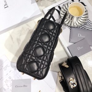 Túi xách dior lady 5 mắt da lỳ màu đen – DOLD029 là dòng túi like auth 1:1, túi được gia công tỉ mĩ, thiết kế chuẩn form, được làm từ chất liệu da cừu cao cấp, rất mềm mại, có thể lau sạch vết bẩn dích trên da. Phụ kiện túi được làm từ thép không gỉ , sáng bóng sang trọng.