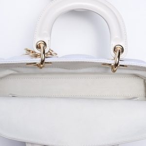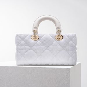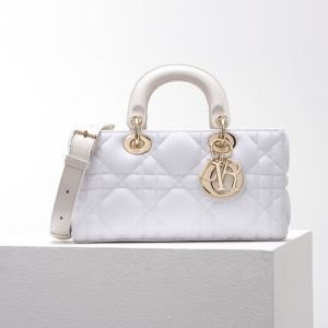 Chiếc túi Lady D-Joy là sự sang trọng và vẻ đẹp bằng cách thể hiện tính thẩm mỹ mang tính biểu tượng của dòng Lady Dior. Được làm thủ công từ vải công nghệ trắng với các chi tiết chần bông theo mô hình cannage quá khổ, phong cách tinh tế và vượt thời gian được tăng cường bởi những chiếc ‘DIOR’ kim loại hoàn thiện màu vàng nhạt tôn lên hình bóng của nó một cách trang nhã. Với một dây đeo vai dạng chuỗi có thể tháo rời và một dây đeo vai bằng da có thể điều chỉnh và tháo rời khác, túi Lady D-Joy có thể được xách tay, đeo qua vai hoặc đeo chéo như một người bạn đồng hành hàng ngày.