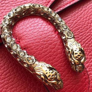 Túi xách gucci dionysus màu đỏ – GCDD027 là dòng like auth 1:1 cao cấp. Chiếc khóa đôi đầu hổ của thần rượu nho Dionysus trong thần thoại Hy Lạp, được trang trí bằng pha lê Swarovski và dây chuyền thô rất thanh lịch và lãng mạn.