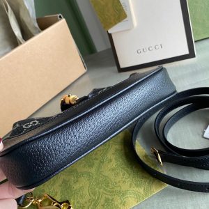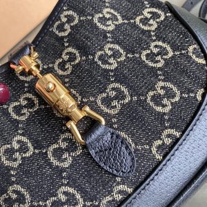 Chiếc túi Túi xách Gucci Jackie1961 Small này có đường viền bằng da màu đen và phần cứng khóa đẩy tông màu vàng đặc trưng của Gucci. Được làm bằng chất liệu vải denim với họa tiết GG và được tăng cường với một dây đeo vai bổ sung, có thể tháo rời. Được gắn vào túi với một khóa đóng, dây đeo thứ hai tạo thêm cảm giác hiện đại cho phong cách lưu trữ, mang đến những cách đeo mới — từ tay cầm trên cùng, đeo vai đến đeo chéo.