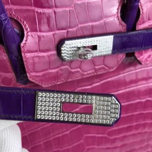 Túi xách Hermes Birkin da cá sấu phối màu hồng tím size 30 – HBHT0217S là dòng like auth cao cấp hermes, túi chuẩn form, giống 99% túi hermes chính hãng. Túi được làm từ da cá sấu cao cấp, gia công tỉ mỉ từng chi tiết, phụ kiện túi được làm từ hợp kim không gỉ cao cấp. Túi đầy đủ full bill box.